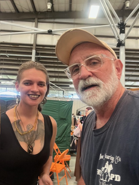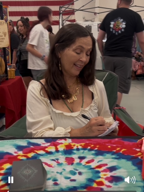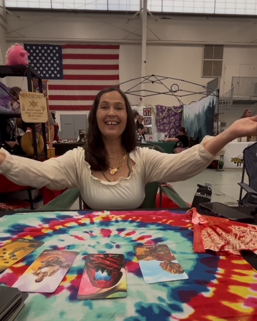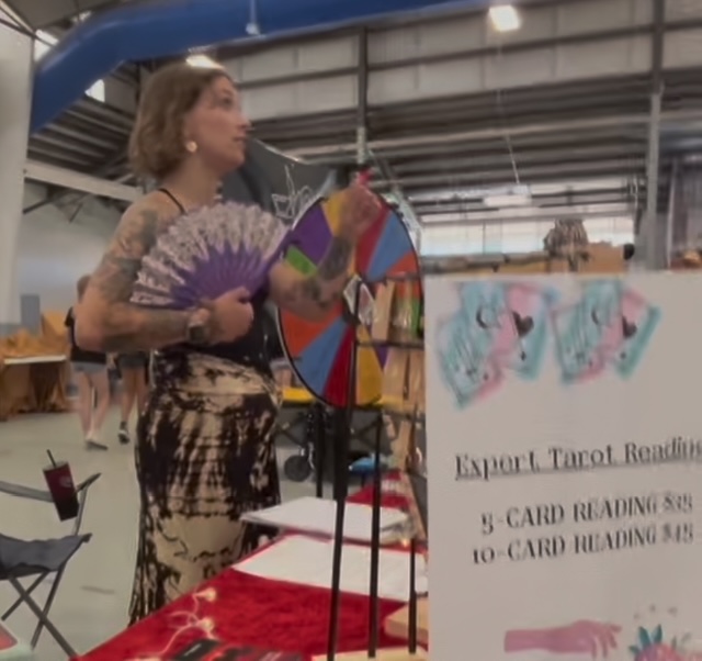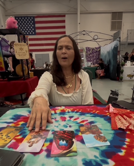 However, this one table drew me in. It was manned by a mother and daughter team – Amy Norman-Foster the Mom Tarot Reader and her equally beautiful mystical crafts woman and carnival barker daughter Josephine –