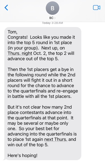 But it’s not that wide of a stretch between the horror genre of movies and Tom’s genre of Sci-fi/fantasy. So it’s a safe bet that all 3 co-hosts have friends in that arena too that they can connect Tom with if he gets their attention by continuing to advance through these late rounds of the contest and maybe even win.