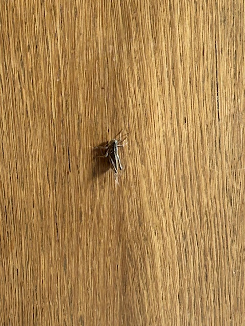 Yesterday, Lisa called out from the kitchen that there was a grasshopper on the wall.
