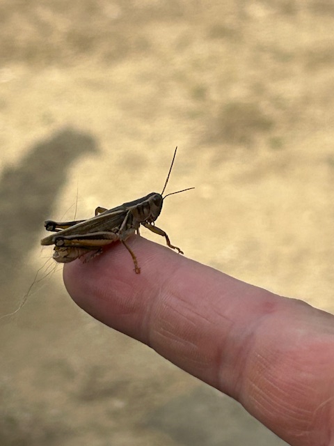 Now I’ve captured a lot of grasshoppers in my life, and they usually take the first opportunity to leg it, often bouncing around on the inside of your cupped palms like someone experiencing a M-1 Hold in Colorado, as you move them to safety. And once you offer them daylight, they are gone. Not this guy. He was definitely communing with me.