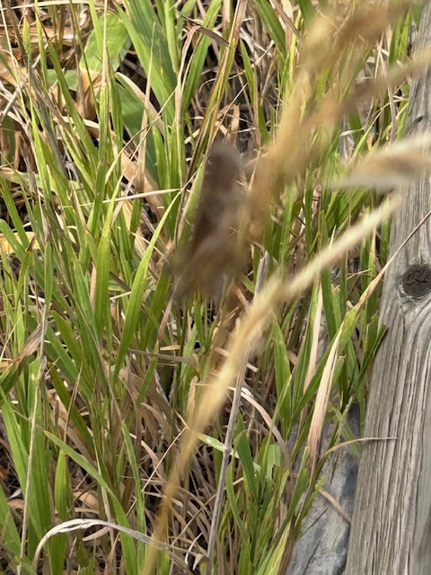 Finally, I stuck my hand through the fencing around the Jack The Spruce Grotto, and he slid off onto the tallest stalk he could find, like he had spotted just the right bus stop for his destination.
