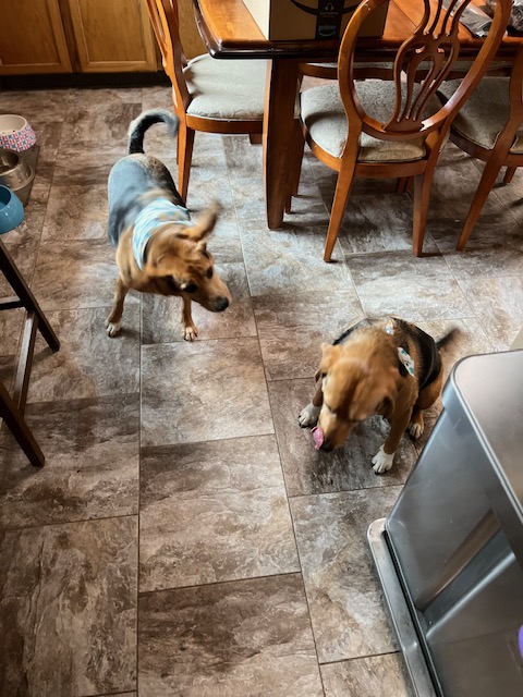 Well, the good news out of all of this is that the ordeal distracted me from the anxiety of the Beagle Brothers evaluation at The Dog Ranch. At one p.m., I received a text saying I could come and get them and that Smokey and Bandit had completed their evaluation, played well with the dog group, and were sparklingly spiffy after their baths and mani-pedis.