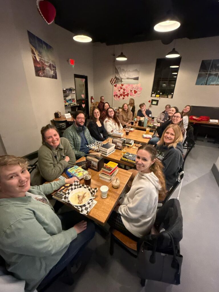 There was over a dozen regular attendees of their book sharing club and absolutely no pressure on me to keep them entertained. Autumn Mestas, standing to the left,