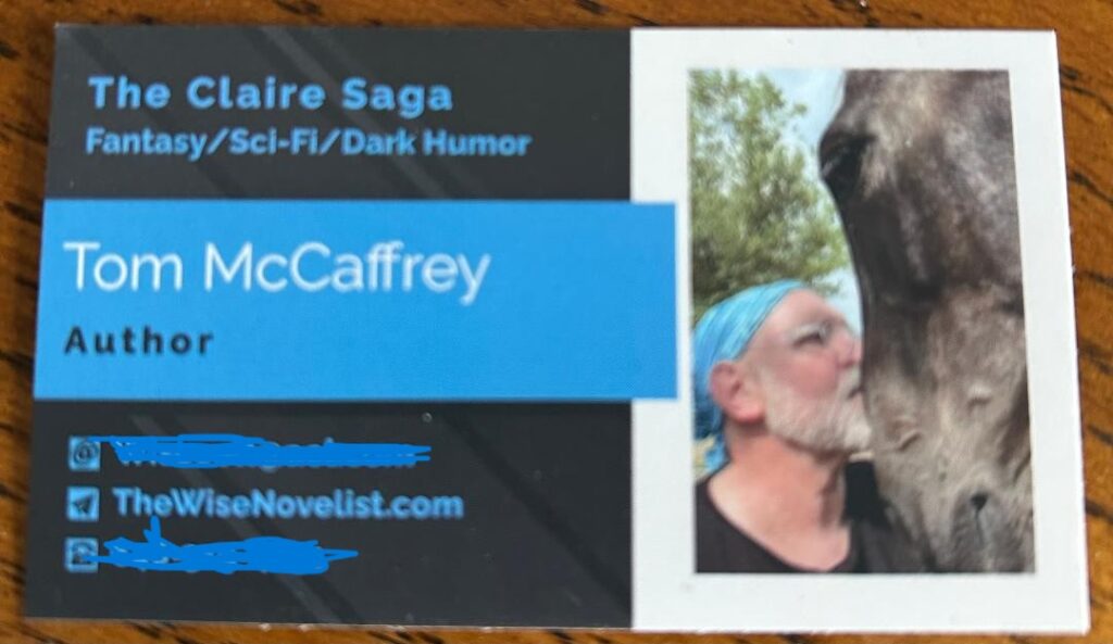 Sari and Ray are a wonderful couple that care for wonderful creatures (they have a dark lab named “Dog”) — some of whom are mentioned in TWA long before we became friends with their humans — on their property here on Berthoud Estates. They do amazing landscaping throughout the NoCo area. Ray gave me my first and only ride in a Tesla truck which is the closest thing on earth to riding in a spaceship. Trust me on that. He was kind enough to tell me he enjoyed the books. And Sari built the Berthoud Estates Free Lending Library on the corner of their property, which hosts a donated and inscribed set of The Claire Saga.