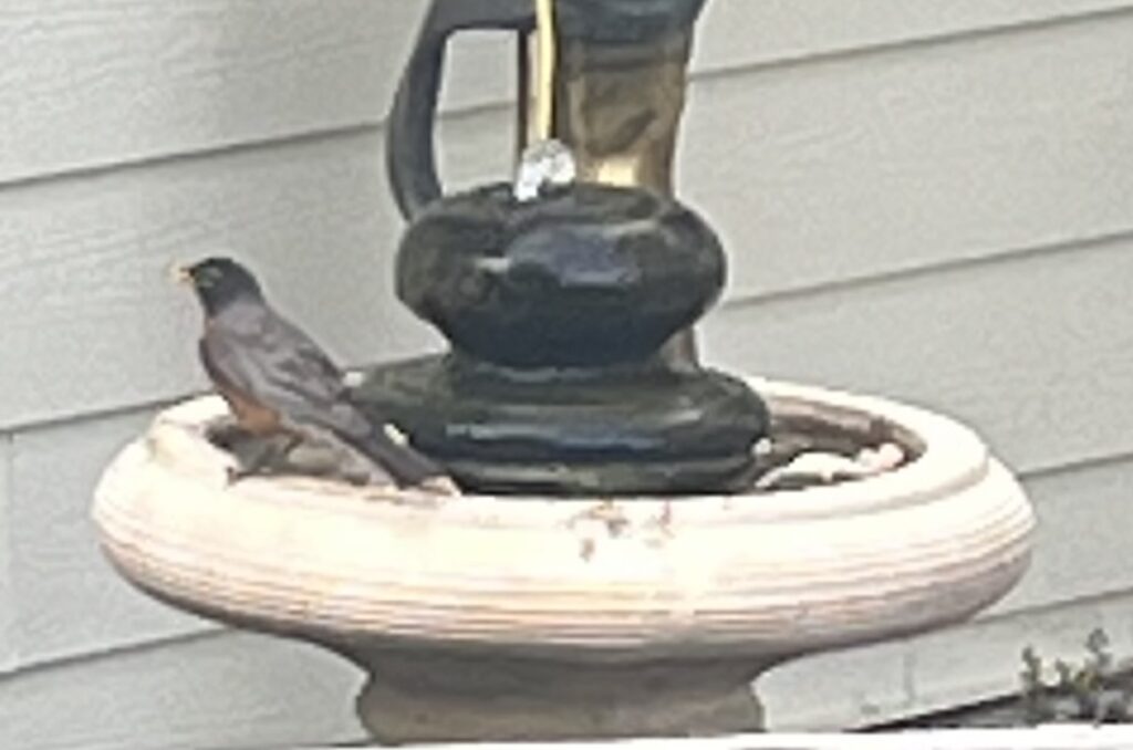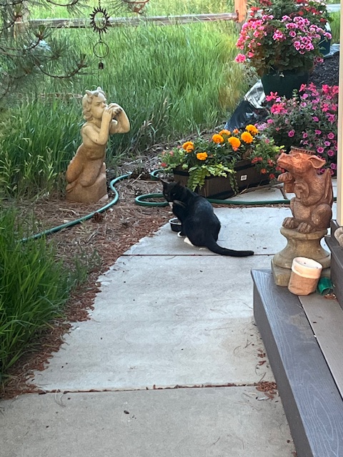 The creatures of Casa Claire have free reign on the property. My role here is to make my regular rounds as unobtrusively as possible to ensure that their every needs are met, doing my best not to interrupt their enjoyment. This means basically making sure there is adequate food and water readily available. Troughs and water fountains must be regularly topped off throughout the day.
