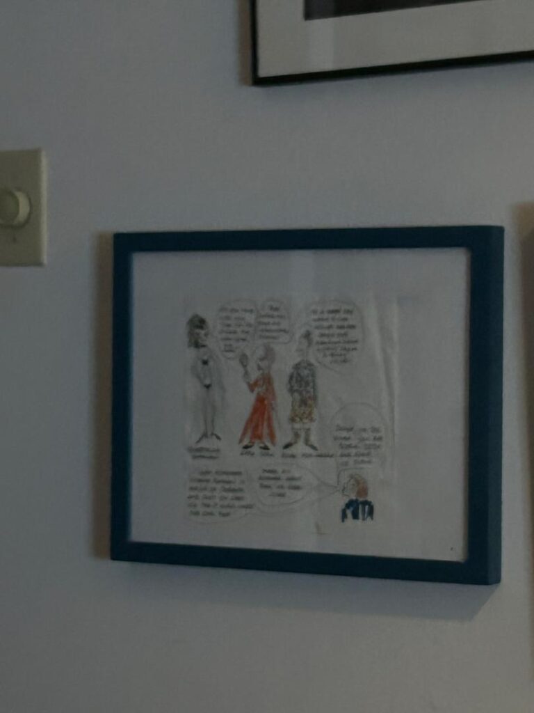 The cartoon hangs as historical inspiration on the wall of my office where I have written all my novels.