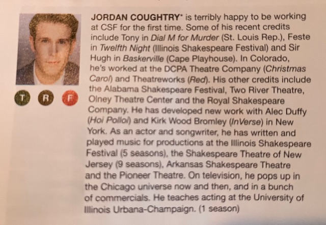 Now, having attended the CU Shakespeare Festival each year but one since our arrival, I’ve come to appreciate the passion and talent of many of the actors that return to perform with this troupe. They are excellent.