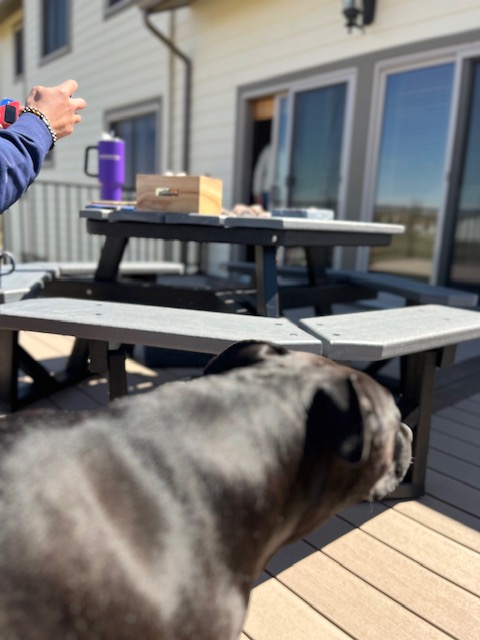 And Blue, whose loyalty overcame her boredom as she lay there while she and the crematory ashes of her passed friend and family member, Cairo, and Scarlett’s quartz stones absorbed the unique energy raining down on them.