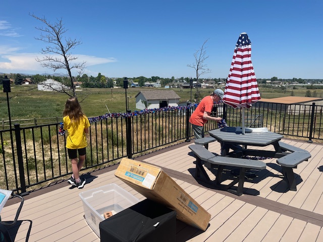 Well, I came home to find Lisa and Scarlett working hard at setting up the back deck for the 4th of July family BBQ we are hosting.