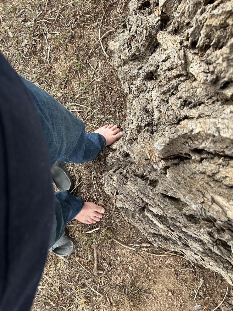 I’ve gotten tree hugging/grounding down to an efficient process. I approach the tree with the intention of interacting with it. I place both hands as far apart as I can comfortably do it – in TOM’s case, my hands are split between its connected trunks – and then I place my face against the bark with my bare feet planted by the base of the tree. Then I take ten, slow and deep 4x4x4 breaths. I used to count to one hundred in Mississippi’s, but I found that distracted me from just being in the moment.