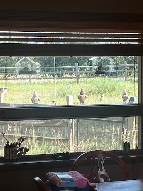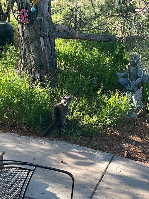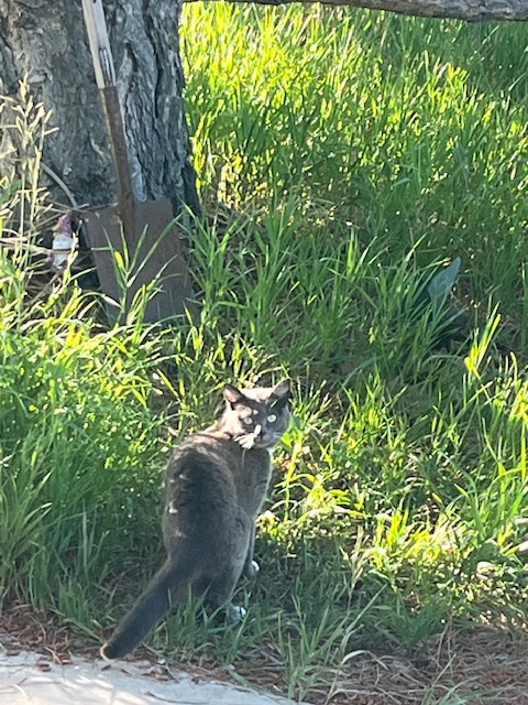 Of course, Smokey (the feral cat) loves to disappear into the safety of the Field of Dreams high grass beneath the shade of Jack the Spruce by the faeries in the magic grotto, where she can rest blissfully protected from all harm on these warm summer days between meals.