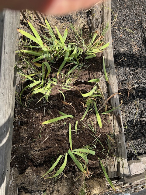 I really didn’t feel like doing any more work at home, but given the history and mojo of these particular plants, I got out my gloves and spade and pulled all of the weeds and high grass by our Volunteer Irises and created a bed that incorporated them into this new batch of healthy stock.