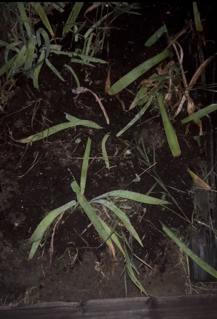 I dug them up and m oved them to a small spot of high grass at the end of the JTS Grotto, by the gate between the side and front property. A place where Claire and Honey cannot get to them. Oddly enough, the hardy buggers started to be the first blossom in spring.