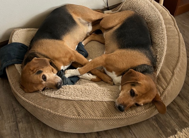 Speaking of the Beagle Brothers, it was nice to see them playing Paddy-Cake in the comfort of one of their many throw beds, this one in my now spotless office, while I listened to the greatest legal minds of our generation brilliantly drone on, about information I had no interest in retaining.