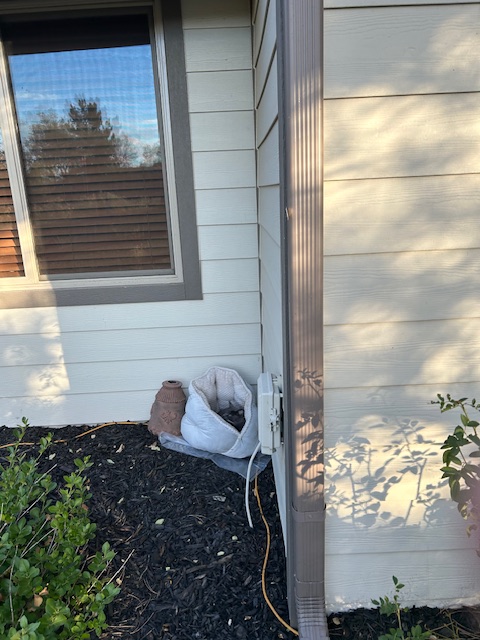 and completely away from the front porch feeding area, a spot where there is the most family human traffic and where our next-door neighbors’ dogs like to regularly visit numerous times daily to clean up whatever cat food has been left behind.