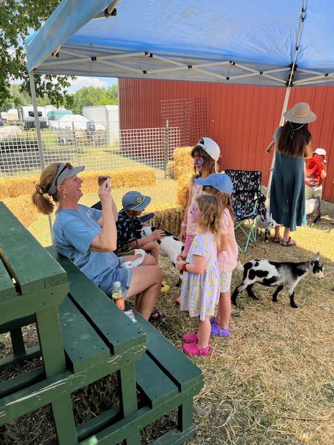 Properly artistically amended by war paint, the girls were then entranced by a lovely woman who explained the wonders of the different kinds of baby goats in the petting zoo.