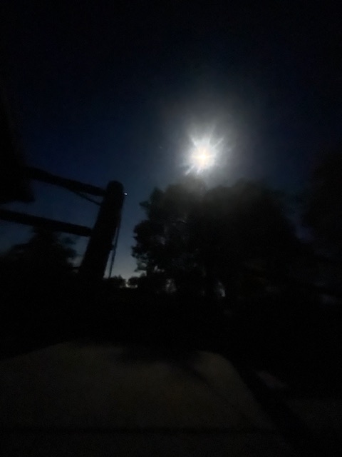 And then just as I was hand lettering the final binding in the group of volumes, which were each physically larger than I was, Bandit did his thing and choked me to consciousness, so I would let him and his brother out into the night to do their thing. But this time the ephemeral images stayed with me, floating around my consciousness – but outside of my body – like being trapped in a slow moving dust devil or snow globe as I went out into the night and snapped that second photo of the moon over The Old Man.