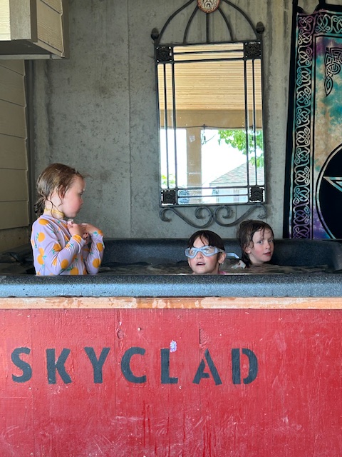 and once they were sufficiently cold, it was another race across the muddy parts of Casa Claire before rinsing off the newly acquired muck in Skyclad, the hot tub.