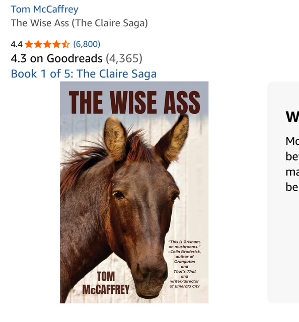 Now yesterday I put out a shake the tree posting on FB to try and bump the Amazon ratings/reviews number for The Wise Ass from 6799 to 6800. I know, its just one review, but when you check out the book on Amazon, the number goes from the summarized 6.7 to 6.8. And that looks substantial.