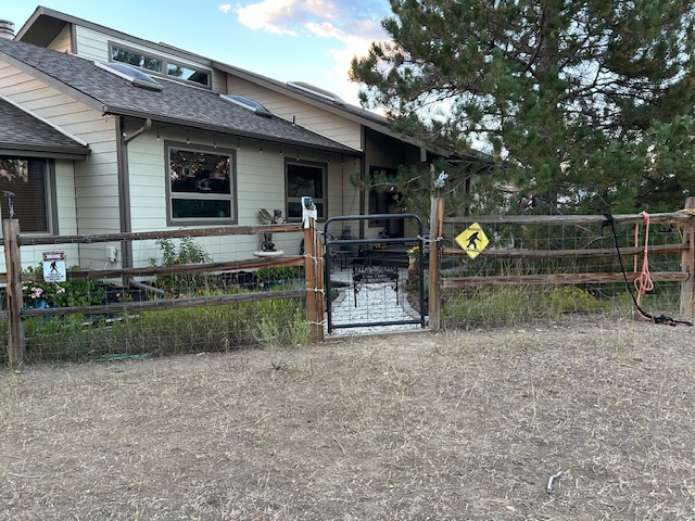 So, it’s official, should I ever leave this energy plane, or planet, the house has a publicly noted name. Sort of like when the Wizard of Oz gave the Lion, Tinman and Scarecrow public acknowledgments of their true essence. Of course, in order to see that gate up close and personal, you either have to get past the dogs and mules in the front property, or be an invited guest and come through the magic grotto past the Fae, dragons, spirits and feral cats – and the always vigilant Jack the Spruce – to the white gravel path that leads to it. And since I enjoy being a recluse . . . .