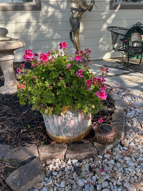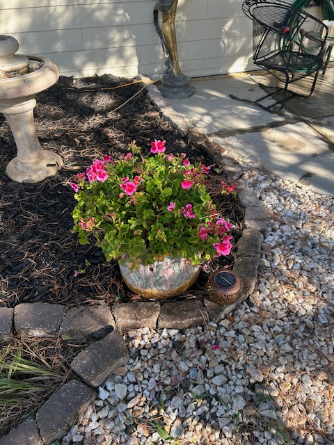 Now their perfectly good and pretty large existing ceramic pots were repurposed to accommodate upgrading some of the other plants that I know are perennials because I bought them off the Home Depot Perennial table one day when I was sans wife – who refuses to buy perennials.